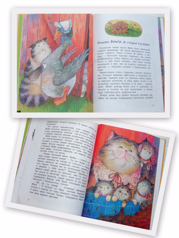 "Кошка Фиби и старая гусыня" - этот рассказ мне понравился. Старая гусыня придумала интересный способ проучить кошку, которая ради развлечения таскала птенчиков у воробьиного семейства.