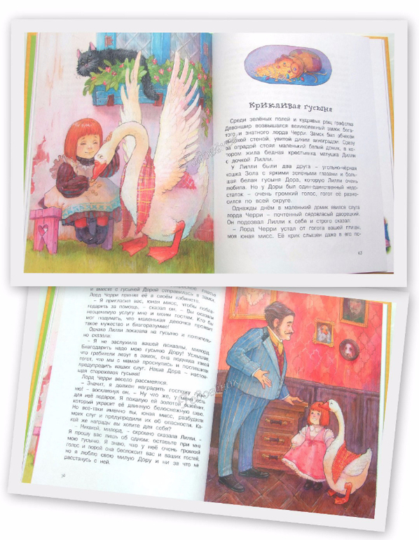 "Крикливая гусыня" по сюжету напоминает историю "Как гуси Рим спасли". Ночью гусыня закричала, разбудила хозяев и не позволила ворам проникнуть в зАмок.