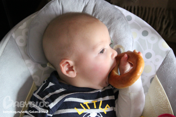 Ааааа)))лапустик))) мой всасывается в абрикос, умудрился деснами отшмякать кусок, я так испугплась, быстрее ему в рот вытаскивать))) глаз да глаз)))надо тож бублик купить-его не откусишь))