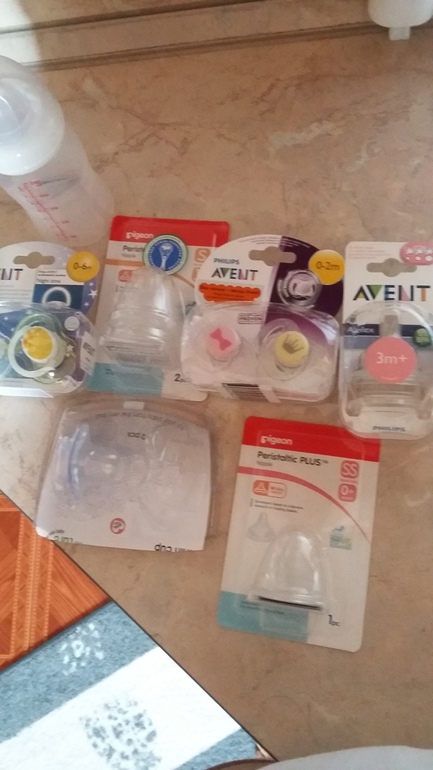 новая бутылочка pigeon с запасными сосками (со старшим пользовалась только такими - очень удобные, но с дочкой не пригодились, оставила себе одну для воды)