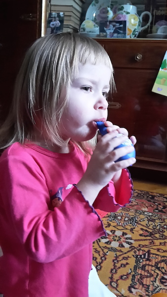2. "Аэробол". Соорудили вот такую конструкцию, поиграли. Но нам больше нравится дуть во всякие дуделки, особенно в "язычки" клоунские.