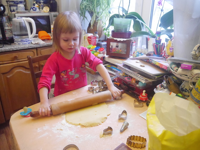 Надюша сама раскатывала тесто и вырезала фигурки.