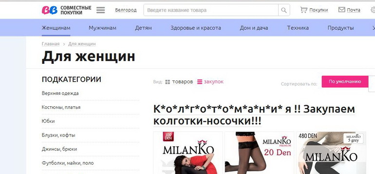 1. Выбираем категорию, например "ЖЕНЩИНАМ"