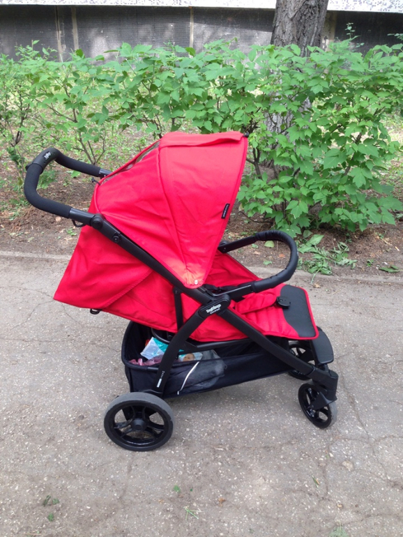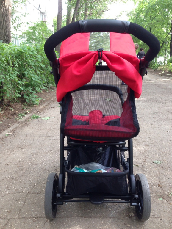 Когда выбирали прогулку прочитали кучу отзывов о разных колясках, поэтому о своей решила написать обязательно, так как мало информации о ней нашли. Данную коляску заказывали через интернет-магазин Детского мира. Жаль, что не было возможности приобрести эту коляску в розничных магазинах. Метались между ней и Peg-Perego Book Completo, сначала купили её, через пару дней выявился производственный брак, решили поменять на Booklet и не пожалели. Откатались 1,5 месяца, выходим на прогулку 1-2 раза в день, ребенок спит по 2-3 часа. В целом покупкой довольны, не вездеход конечно, но коляска хорошая! Лучшее что можно найти в своем классе. Маневренная, быстро складывается (по типу книжки), в сложенном виде удобно катить как чемодан, но мне лично совсем не удобно нести в раках, особенно по лестнице. В багажник калины хэтч вмещается только если снять 1 колесо (все колеса снимаются легко и быстро), так что не все багажники вместят эту колясочку. Просторная, ребёнку комфортно, удачно расположено окошко в капоре, удобный козырёк от солнца. Кап до бампера не опускается, учитывая, что в комплект коляски не входит чехол на ножки, колясочка в основном на лето, на зиму не вариант ещё и потому что колеса по нашим замерзшим кочкам не пройдут вообще. Дождевик с коляской не идёт, но у нас остался от предыдущей коляски Cam Cortina, подошёл идеально. С корзиной проблем не было, достаточно вместительна, покупки помещаются, но арбузы конечно не стоит в ней возить)) В крайнем случае приспособилась использовать фиксаторы как крючки, вполне можно довезти упаковку памперсов повесив на него. В лифты старого образца входит без проблем. Наклон спинки регулируется ремнём. Докупили сумочку-органайзер на ручку для бутылочек и прочей мелочи. Планирую докупить чехол на ножки, пока пользуемся просто икеевским пледиком.