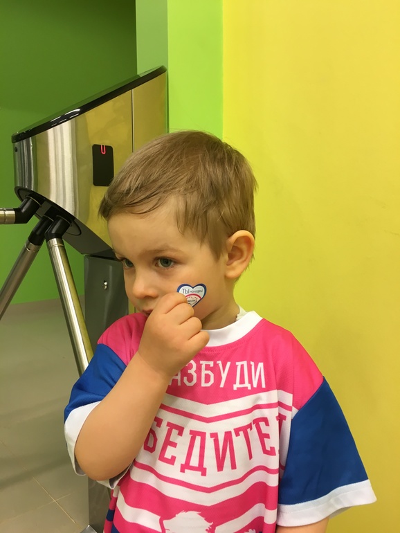Федюшонок на футболе. Рыдал за мамой, приклеили наклейку, снимает. 😁