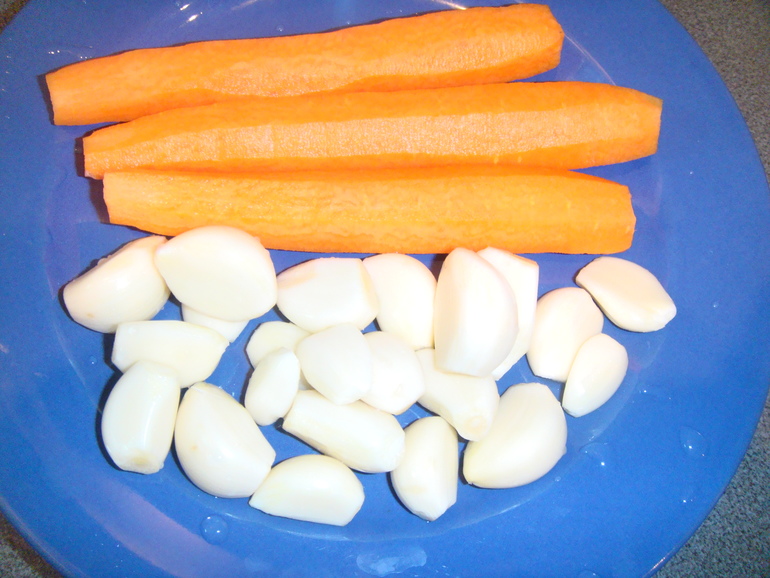 Мелко нарезать морковь и чеснок, добавить в фарш: