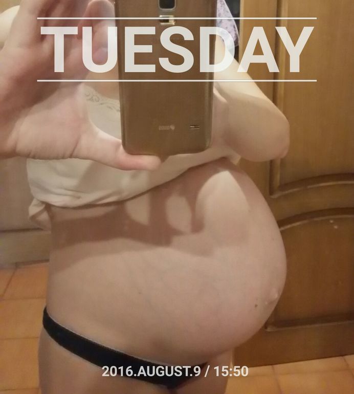 Мне надоело ходить с животом. Это просто жуть, чувствую себя коровой с отвисшими сиськами и огромными коричневыми сосками. В 33 недели опустился живот ( врач подтвердила) и с тех пор начался ад. Дикая боль в промежности, малыш огромный, давит Туда очень сильно, что мне каждый раз кажется, что сейчас вывалится. Начались глюки, то мне показалось, что у меня воды подтекают, трусы показались мокрыми, муж меня собрался в роддом везти. Купила тест на подтекание, все ок. На след.день мне показалось, что у меня раскрытие, ноги не могла вместе сжать, было больно, муж опять собрался в роддом. Сегодня с Лерой сама съездила туда на консультацию к своему врачу, она успокоила, сказала все ок, все на месте, договорились что 1 сентября к 10.00 я ложусь.