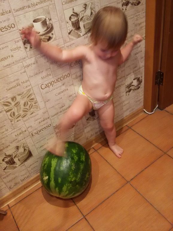 Зато любит катать арбузы по квартире, играет с ними в мяч))