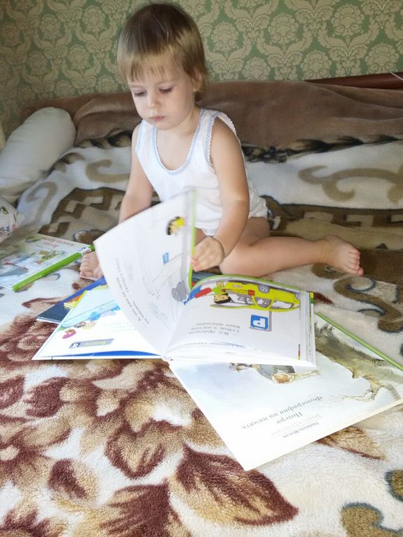 Просто обожает книжки, частенько наведываемся в библиотеку, там просматривает каждую выбранную мною книжку, одобряет или откладывает, а дома кайфует, читаем одно и тоже по 100раз, покк наизусть не выучит