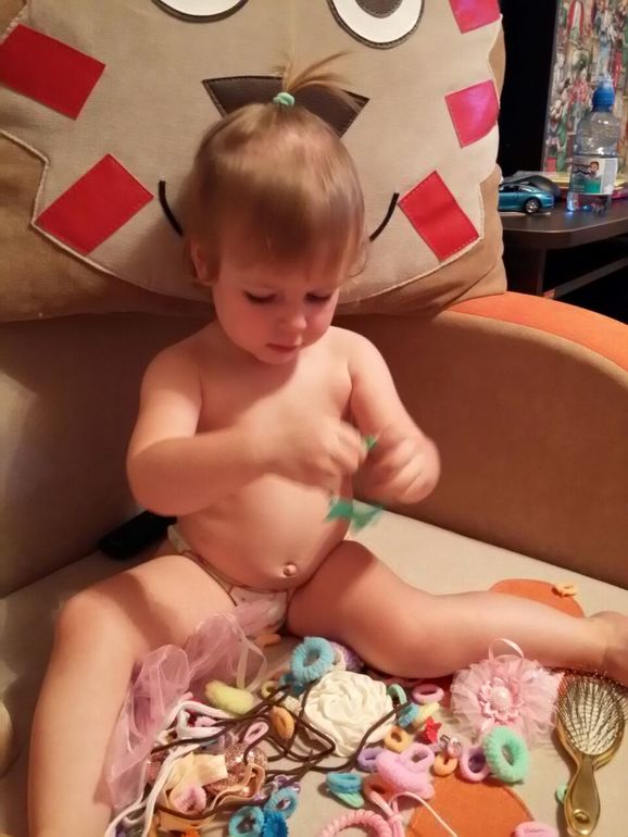 А тем временем ей уже 2.2. Рост 89, вес 13500, нога 14,5 см. Взрослеет на глазах, сама обувает тапки, сандалики, кеды и рез.сапоги; с кроссовками проблемы. Одеваться пытается, но криво все получается. Сама садится на горшок, встает, одевается. Ночью сама просыпается и садится на горшок. Все хорошо, но иногда какается.