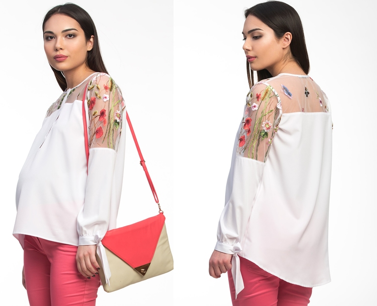 Белоснежная блузка с роскошными цветами
