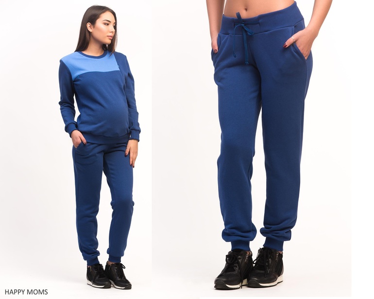 Трикотажные брюки для мам базового темно-синего цвета. Комбинируются с любым спортивным и полуспортивным верхом, прекрасно подходят для осени: