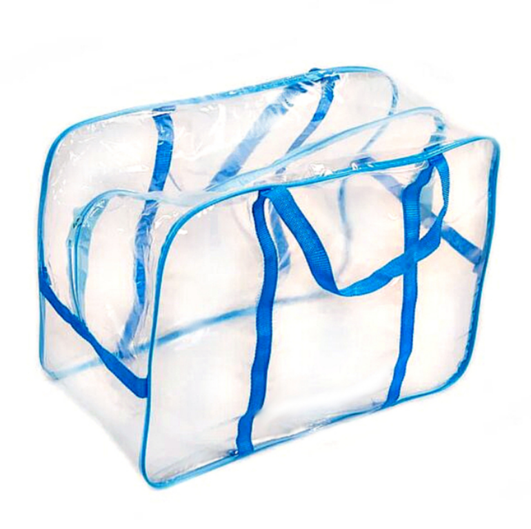 Сумка в роддом из прозрачного материала. Крепкие ручки, надежная молния, вместительная, хорошо защищает вещи от грязи и промокания.