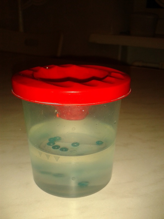 А на днях наковыряла несколько таких "веселинок", налила воды в стакан-непроливайку и насыпала их в стакан. Принесла и говорит: "Мама, смотри, я сделала аквариум. ВеселИнки - это такие рыбки плавают!"