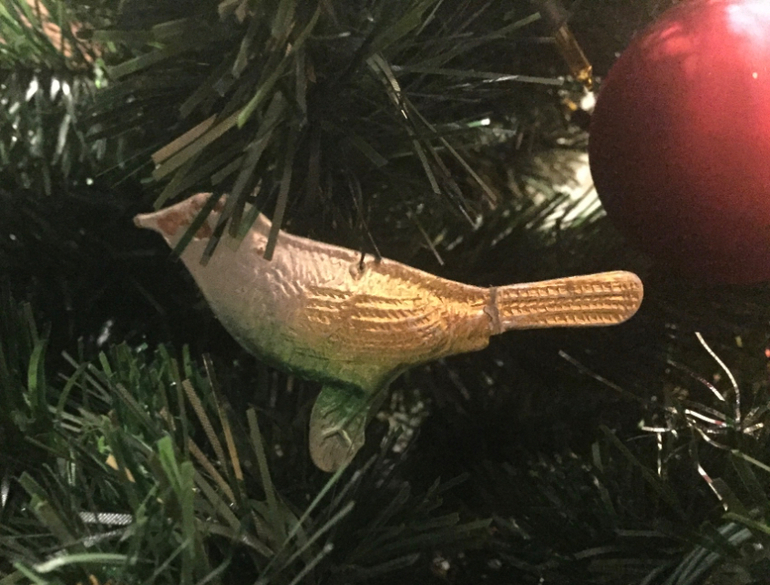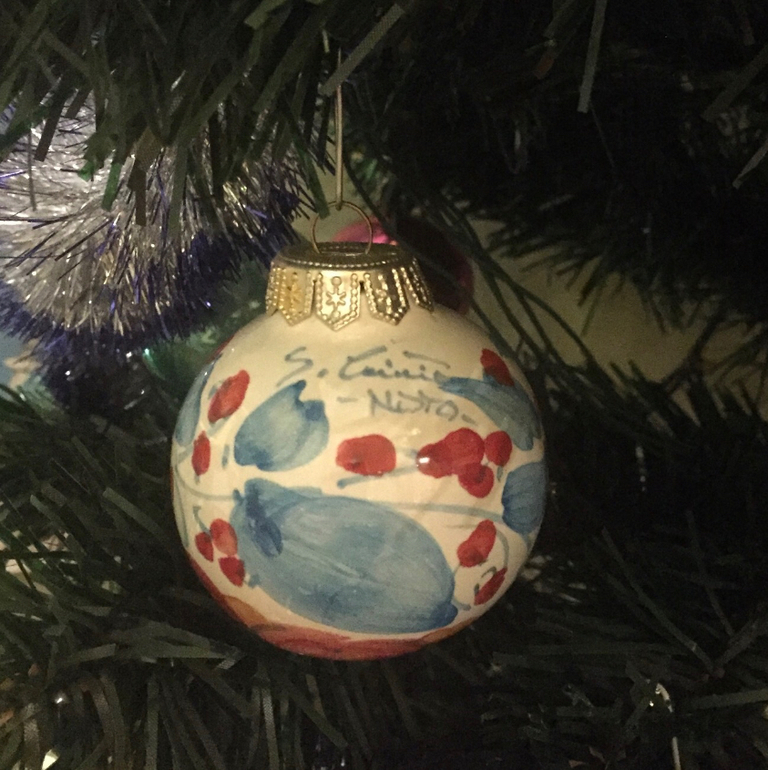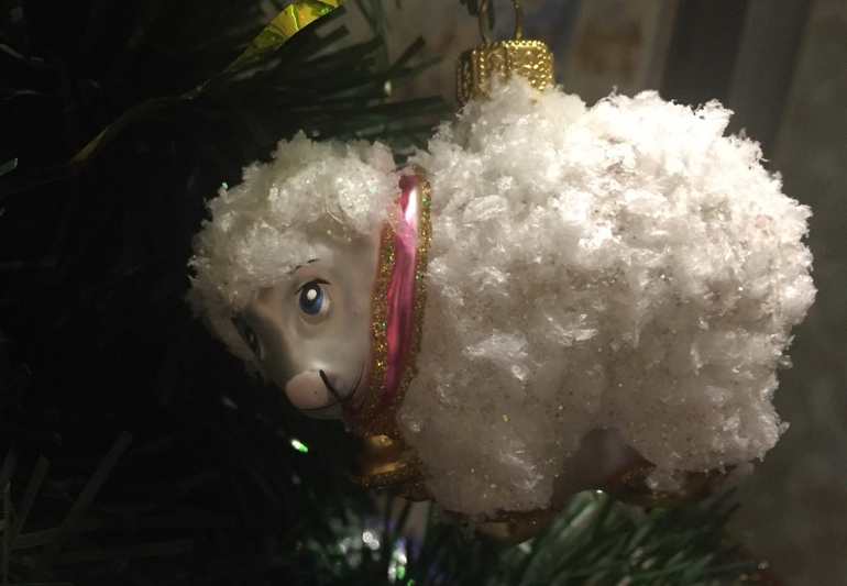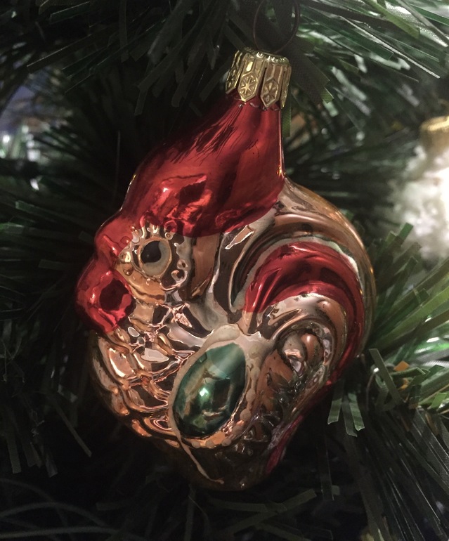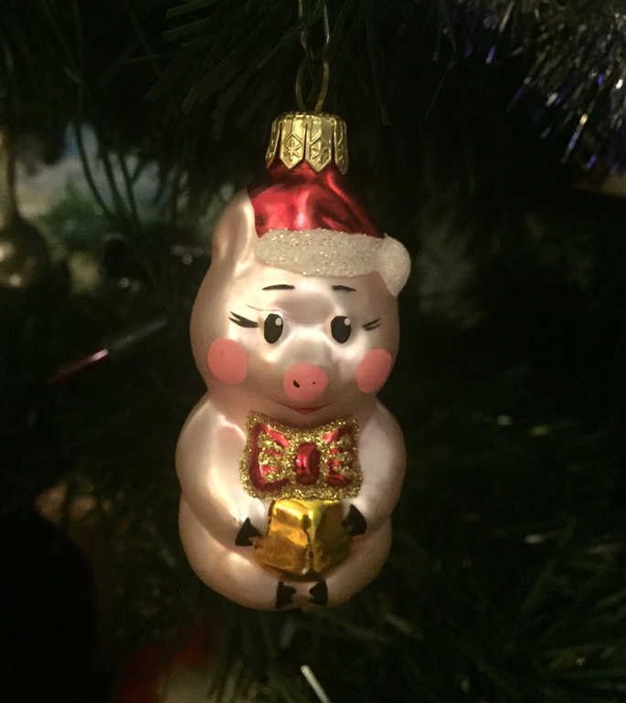 А вот это - первая елочная игрушка, купленная нами после свадьбы. Между прочим, талисман следующего года. С неё и началась наша коллекция животных-символов восточного календаря.