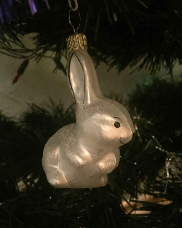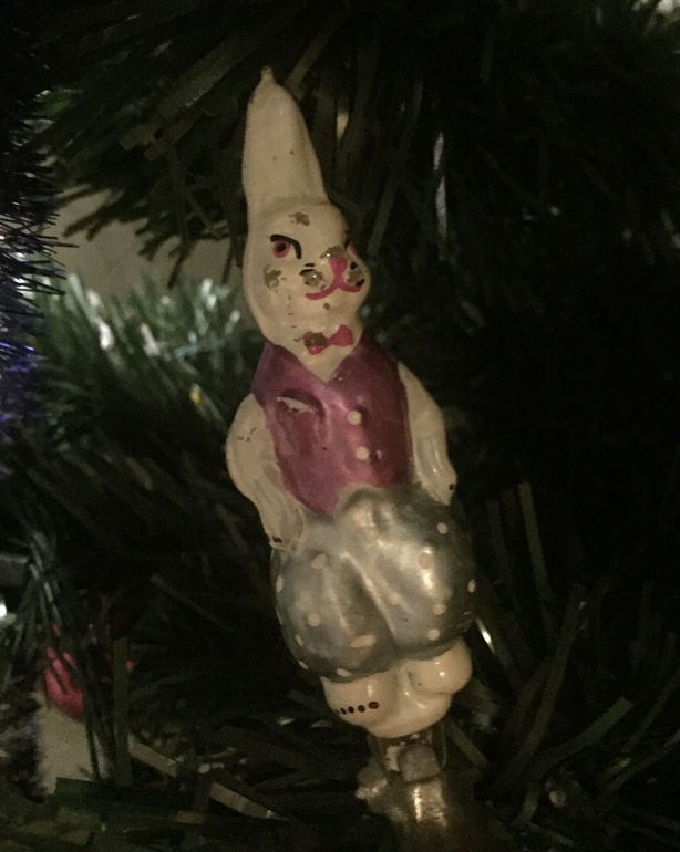 Старых игрушек у нас сохранилось очень мало. Стеклянные - все из детства моего мужа. Вот такой порядком облупившийся "противный заяц" ("Мама, как хорошо ты дождик повесила, теперь зайца совсем не видно!!!"):