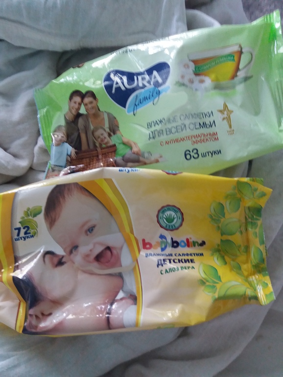 Напишу отдельно про влажные салфетки, вот их нужно много..две большие пачки.