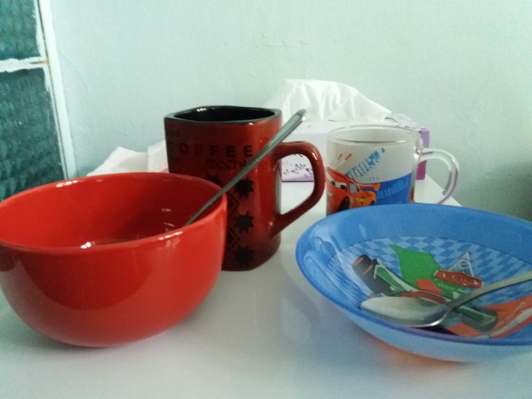 Я взяла с собой две глубокие тарелки две ложки одну большую, другую маленькую ребенку и две чашки. Это даже не совсем из оперы "боюсь заразиться еще чем то" а просто ребенку комфортнее кушать из привычной для него посуды. Чашки свои, по той причине что чай пьем чаще чем кормят.