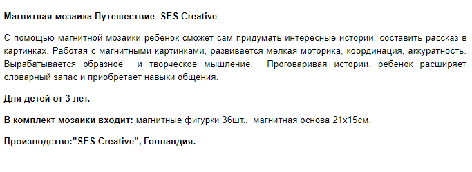 Все дети талантливы, и продукция SES призвана открывать и развивать уникальные творческие способности каждого ребенка. Идея бренда "Открывать таланты" отражена в каждом наборе уникальной продукции SES, известной безупречным качеством и оригинальностью разработок.