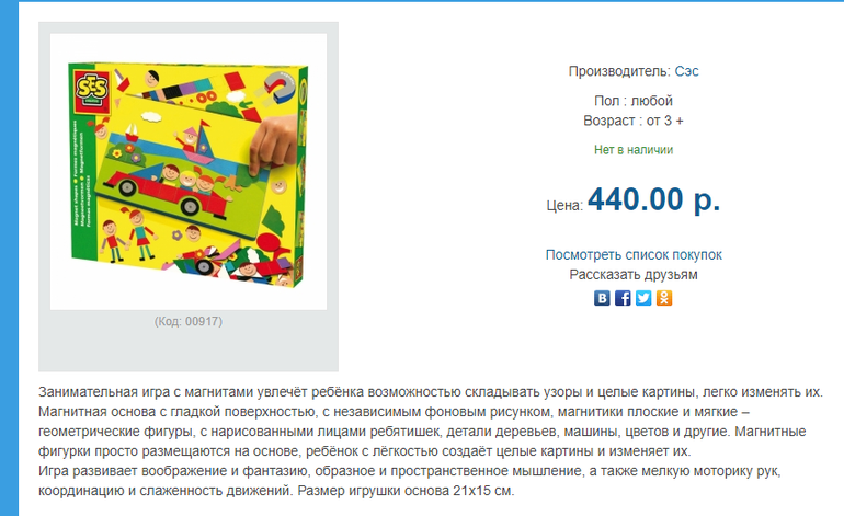00917 Магнитная мозаика. В набор входит магнитная доска и части мозаики. Для детей от 3 лет. 150руб.
