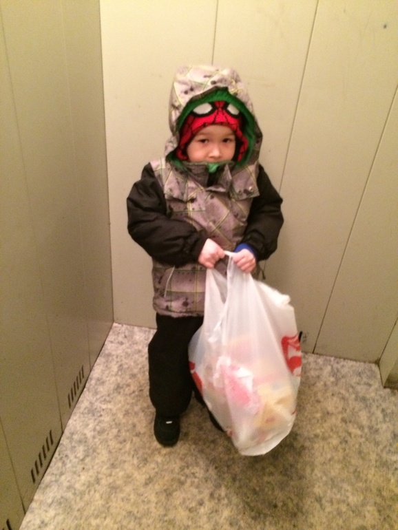 Купили вроде всего по чуть-чуть, а получилось очень тяжело. Ваня знает, что мне после больницы сказали не носить тяжести совсем.