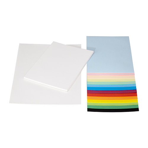 Иногда пользуемся готовыми наборами, перепробовали все, наверное). И дешевые типа Адониса, и дорогие типа Кумона. Иногда Люба сама нарезает газеты или бумагу на кусочки (или я ей дыроколю) и клеит на бумагу для черчения. В качестве цветной используем икеевскую.