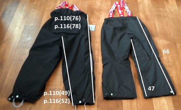 - Низ брючин застегивается на кнопку для блокировки от снега