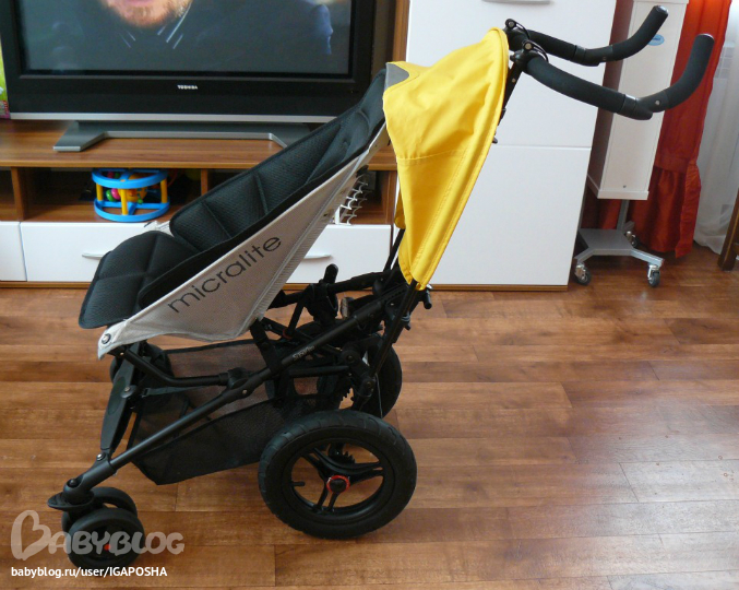 Super-lite: новое поколение колясок-тростей. Легкая - всего 6 кг - компактная и эргономичная коляска, с узнаваемой фирменной ручкой в виде рогов быка. Легко маневрирует и управляется одной рукой. Это прекрасный вариант для летних прогулок: сиденье-сеточка хорошо пропускает воздух и имеет два положения. Вместе с тем, капюшон со смотровым окошком защищает от солнца, а дождевик в комплекте выручает в случае внезапного летнего ливня. Сочетание больших надувных колес сзади и маленьких пластиковых повротных колесиков впереди, позволяет Super-lite совместить качества большой прогулочной и легкой маленькой коляски-трости. Одновременно маневренная и проходимая, она справляется с неровной дорожкой, снижая вибрации, и свободно огибает даже спичечный коробок.