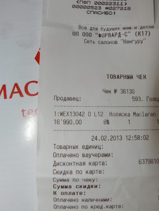 Коляска куплена 1,5месяца назад в салоне Кенгуру, есть чек ( фото прилагается) и документу. Гарантия 1год распространяется по всей РОССИИ где есть салоны Кенгуру, а это почти вся Россия.