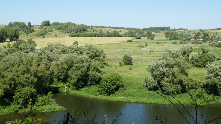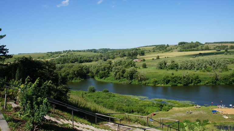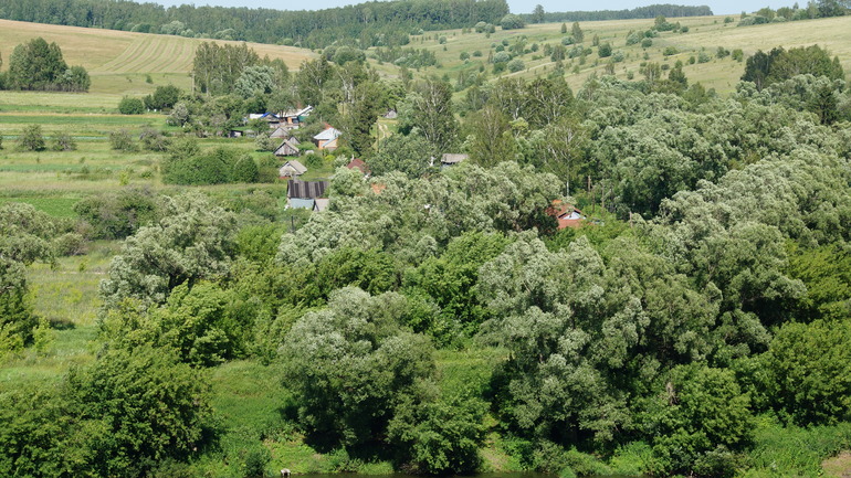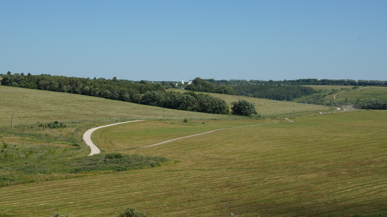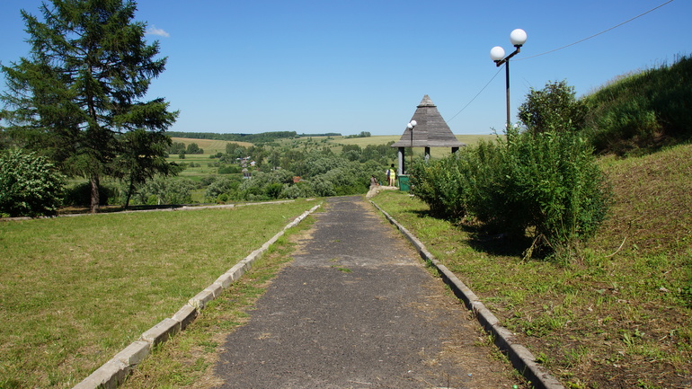 С Горы открывается потрясающий вид: русский пейзаж, поля, деревенька, синь реки, а вдалеке черные маковки древнего Анастасова монастыря и извилистая дорожка к нему...