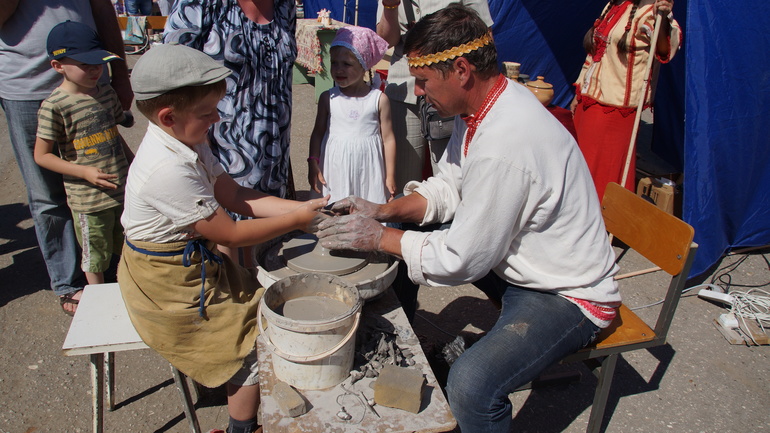 Фестиваль проходил всего второй раз, устраивают его каждые два года, а потому мероприятие еще "не раскрутилось". Оно не масштабное. По мне, это к лучшему! Нет толпы, суеты, а мастер-классы от гончаров и мастеров глиняной игрушки бесплатные! Например, на популярном фестивале "Крапивы" всё-всё уже давно за деньги. А про всякие мамские мероприятия в Туле я совсем промолчу, к мастер-классам мы там даже не подступаемся.