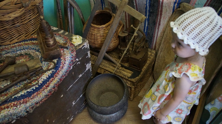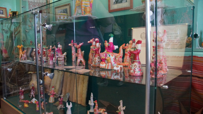 Музей Филимоновской игрушки небольшой, всего три комнатки. Но там собрано огромное разнообразие глиняной игрушки и предметы народного быта. Они, кстати, Анюту заинтересовали гораздо больше игрушек.