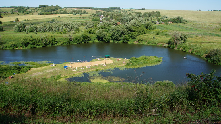 Запустение повсюду... Хорошо хоть траву косят, а то бы зарос бурьяном бывший стратегический объект Ивана Грозного. А еще внизу сделали городской пляж. Здесь, конечно, красиво, вода, думаю, чистая. Но меня, ну честное слово, коробит от этого вида. Ну нельзя на месте, где каждая пядь пропитана историей, простите, голым задом сверкать. Может, я старею?...