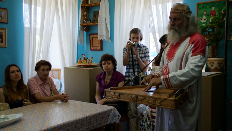 А в самом музее нас ждал еще один необычный музыкант - гусляр.