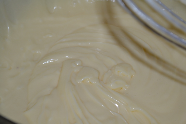 В остывший добавить мягкое масло и взбивать 5-6 минут, влить желатин