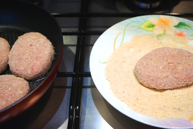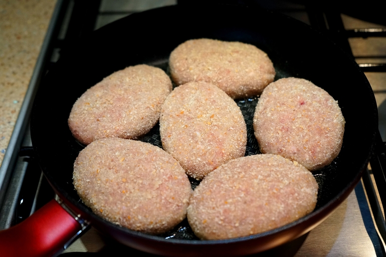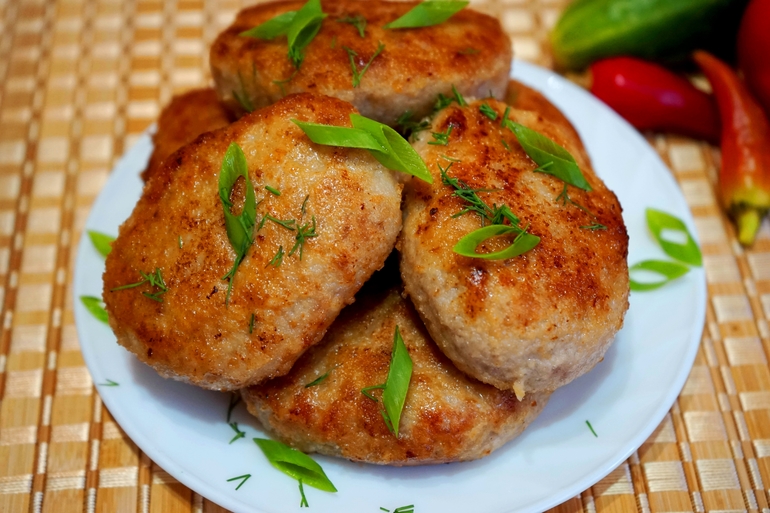 Очень вкусные, с нежной консистенцией котлеты. Хочу обратить ваше внимание на то, что в фарш не добавляется яйцо. Яйцо, по большому счету, в котлеты можно не добавлять. От этого они не потеряют форму, не развалятся и вкуса не потеряют. Яйцо необходимо в рыбных котлетах. А вот добавить черный хлеб для вкуса и белый для клейкости обязательно нужно. Хлеба должно быть не менее 30% массы мясного фарша. На 1 кг. фарша потребуется 1 крупная луковица. Лук придаст фаршу дополнительную сочность.