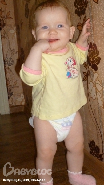 Ходит сама с 9 месяцев, сейчас уже носится!!!