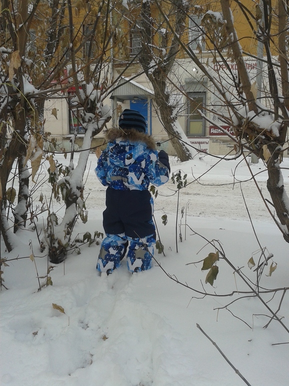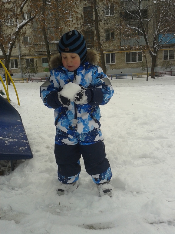 К нам пришла зима, выгуливаем наш комбезик, показывала ранее. Почти дорос до размера. Рост 103см, размер110.