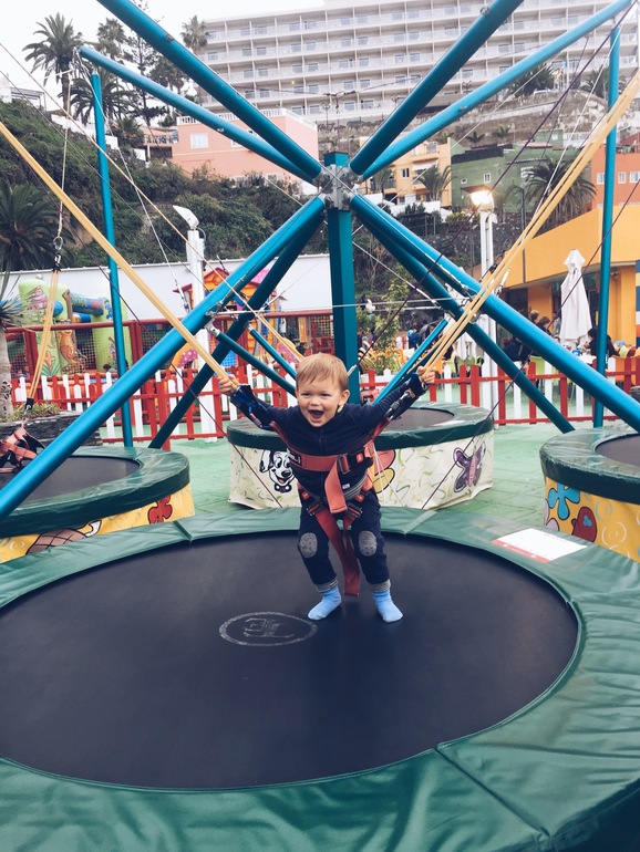 Из детских развлечений еще тот же городок что и в Siam Mall на юге-Drago Siam 2. Те же горки и шарики, еще есть батуты с ремнями-вот Лева их оценил! Находится в ТЦ Martianez.