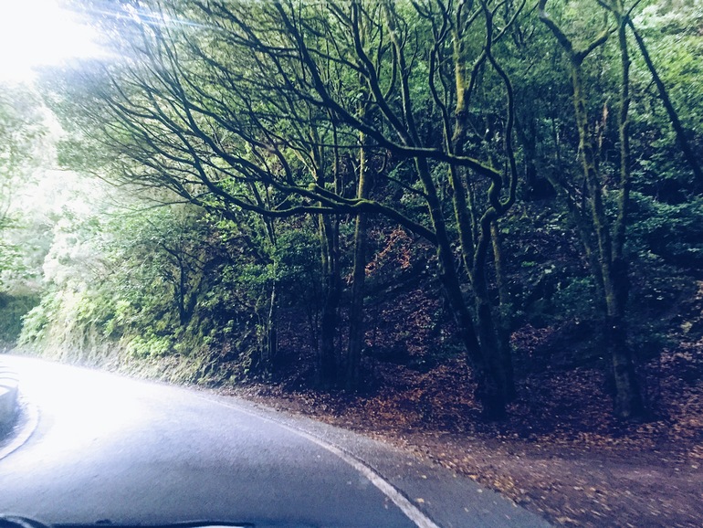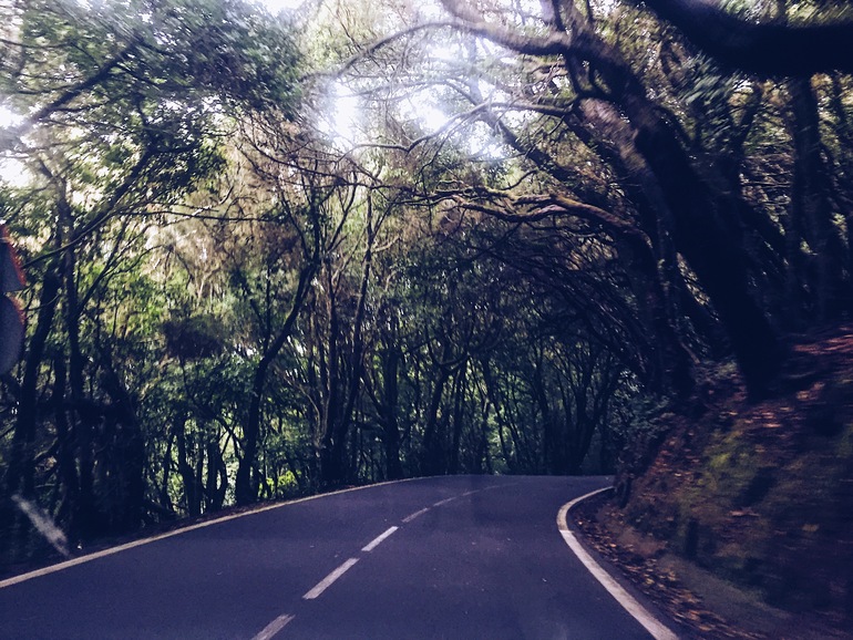 На вулкан можно попасть из любой части отстрова, есть несколько дорог, но я рекомендую ту, по которой ехали мы. По главной трассе TF1 через Ла Лагуну наверх по указателям Teide. Обязательно выделите на это целый день, и захватите теплую одежду. Погода меняется на глазах. От побережья +25 поднимаемся в Ла Лагуну и там +15, затем попадаем в горный реликтовый лес Anaga и там уже +9! Ощущеня, как будто ты в фильме о Гарри Поттере по дороге в Хогвартс. Лес просто волшебный!