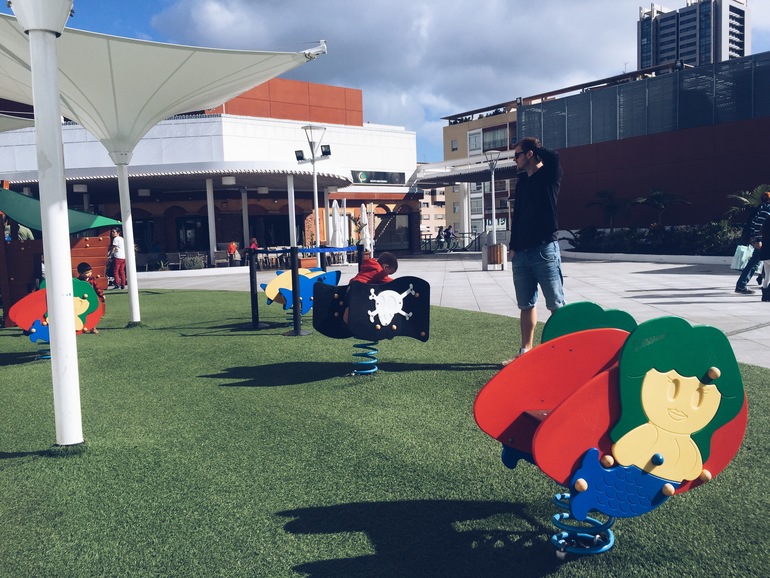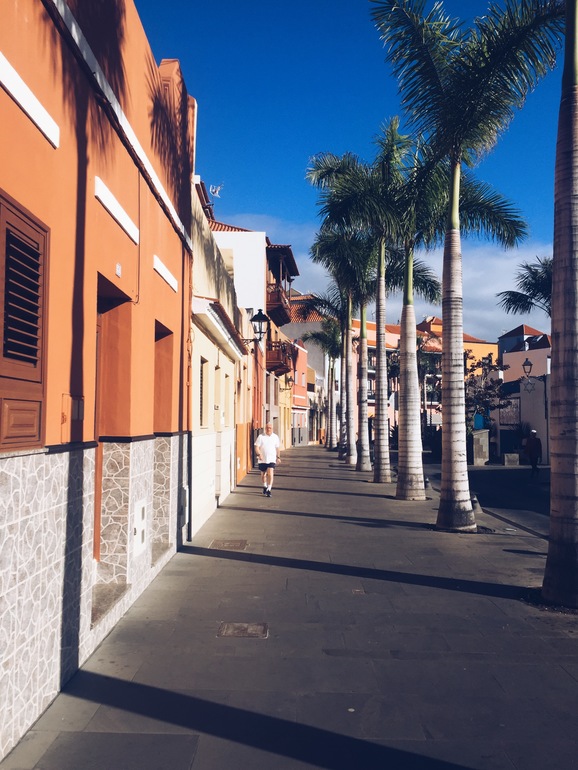 Городком я очень довольна. Во-первых, хороший ландшафт: он плоский, без спусков и подъемов, что большая редкость для Тенера. Там есть все, чтобы закрыть основные портебности: неплохие пляжи, супермаркет, детская площадка, несколько кафе, променад для спорта вдоль океана и длинная аллея чтобы походить пешком вечно убегающему ребенку)). Для всего остального есть машина)).