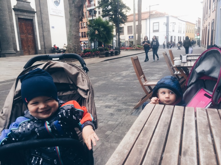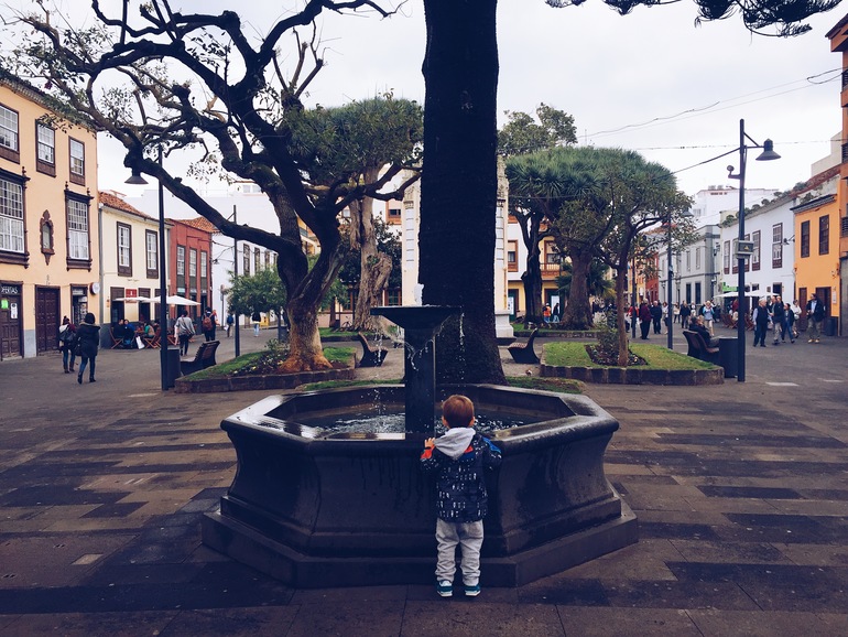 На севере, если подняться чуть выше от Санта-Круса в горы, расположен еще один чудесный город- Ла Лагуна. Это самое сердце острова, бывшая столица. Город тоже совершенно не похож на островной, скорее на старую Европу. Мощеные живописные улочки, уличные кафе и музыканты. Не зря он включен во всемирное наследие ЮНЕСКО. Однозначно интересно там побывать, несмотря на то, что это самый холодный город Тенерифе! Днем зимой там не выше +16 и часто пасмурно. Лева там даже тонкую шапку разок надевал, когда было +12.