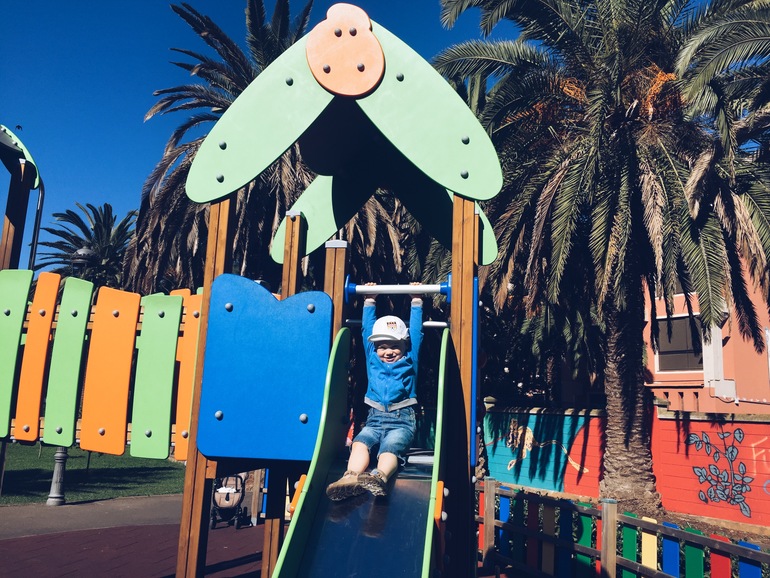 Детские площадкие есть везде, и их не надо искать. Просто идешь себе по улице, и у тебя 5 штук на одной стороне, 5 штук на другой. Все идеально чистые, ухоженные, и конечно исправные. Большинство огорожено заборчиком, чтоб дети не убегали на дорогу. Зачастую, около площадок есть кафе, где родителям можно попить кофе, пока дети играют.