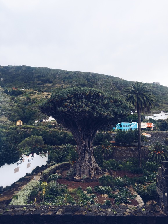 В 20 км от Пуэрто находится небольшой, но очень уютный город Icod de los Vinos. Как раз там мы и прожили третий месяц нашей поездки. Он известен благодаря растущему там Драконову дереву. Это вроде как старейшее дерево на острове, его возраст точно никто не определил, но по прикидкам около 600 лет. Находчивые канарцы сделали платный проход к нему, но зачем платить, если его отлично видно из парка, а главное, бесплатно)).