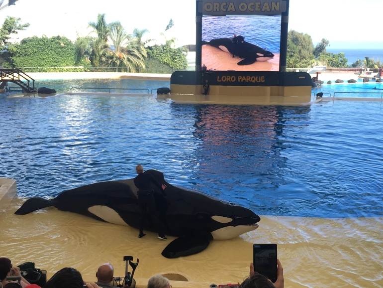 Тут же в Пуэрто находится известный зоопарк- Loro Parque. Он тоже сделан в тайском стиле, и очень раскручен. Везде реклама, что он лучший в Европе, но это далеко не так. Честно сказать, немного разочаровал. Как парк-прекрасен, очень ухоженная территория. Но зверей мало, больше птиц, шоу дельфинов, касаток-так себе. Цена билета 34€ для взрослых, дети до 3 лет бесплатно. Если ребенку от 2 до 3, лучше брать паспорт с собой, могут спросить на кассе и проверить возраст.