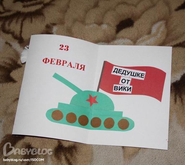 Сделали с дочкой подарок дедушке на 23 февраля. Вот такую открытку.