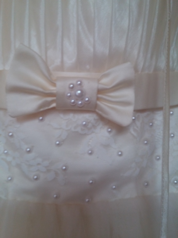 Не одевали ни разу,т.к. подприли, а оно нам мало. На стройную девочку 4-6 лет. Если нужны замеры - сделаю. Сзади шуровка, поэтому можно регулировать по размеру. Единственный минус - потерчлсч шнурок, который шнуруется сзади. Но туда можно вставить абсолютно любую ленту. Под катом еще фото