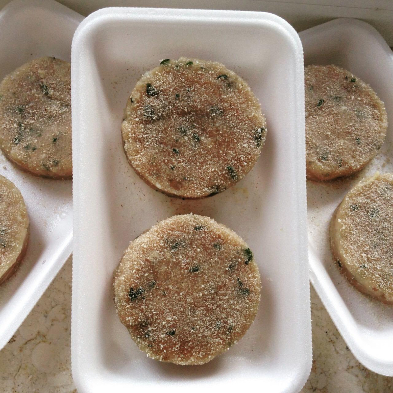 Сочные куриные зразы с луком, петрушкой, внутри кружок сыра, сверху и снизу присыпаны панировочными сухариками.