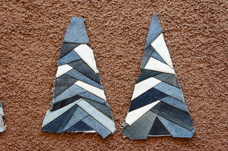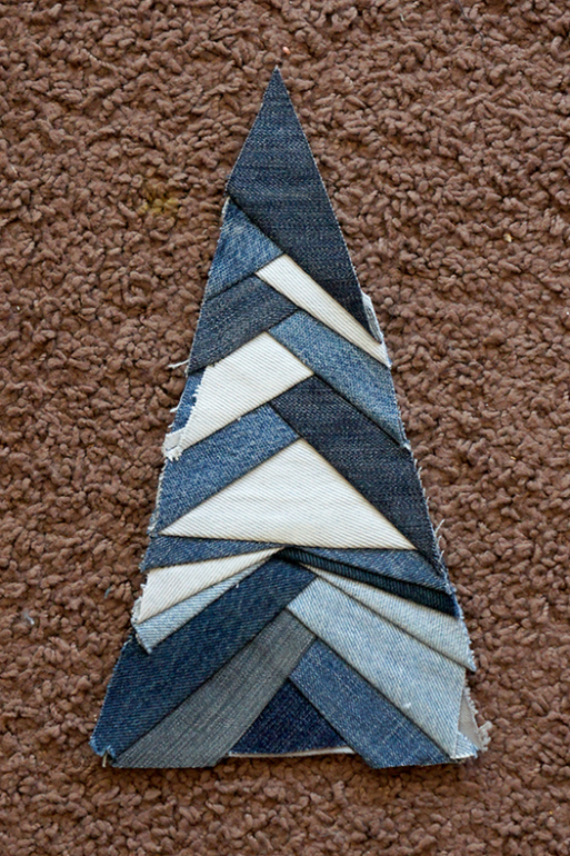 Можно пришивать ровные и правильные полоски и тогда елочка будет геометричная.
