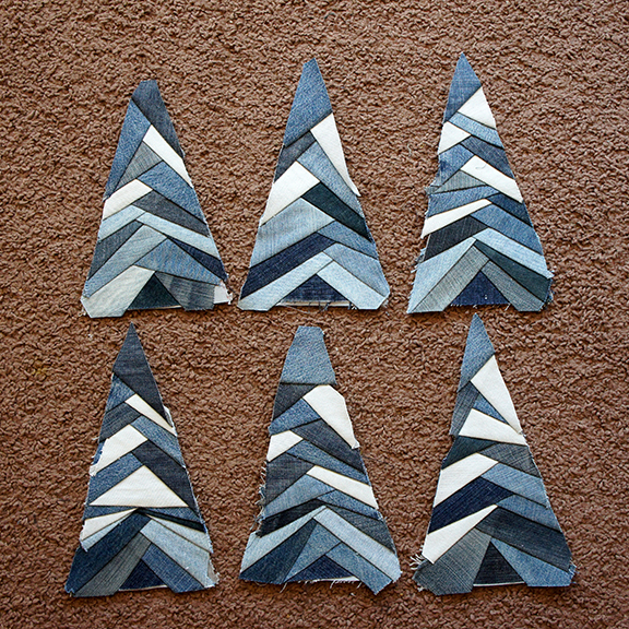 Поэтому, чтобы не скакать туда сюда с одной елочкой, лучше делать сразу несколько. Нашили полоски на все 6 елочек (и на пару блоков), встали и прогладили все 6.